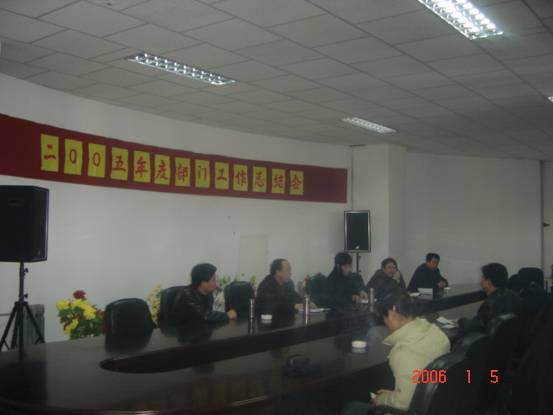 会上首先由总经理王启兵做了2005年全年主要工作回顾,并对2006年工作设想做了简要介绍,其次由各部门主管分别对本部门全年工作做了详细汇报。开此会目的是让全体员工了解各自部门及其它部门05年全年都做了些什么,对公司多一份了解,多一份关注。