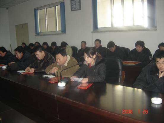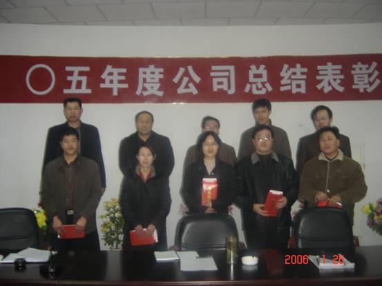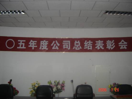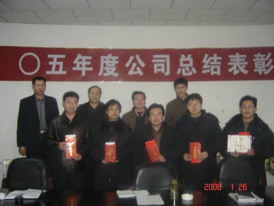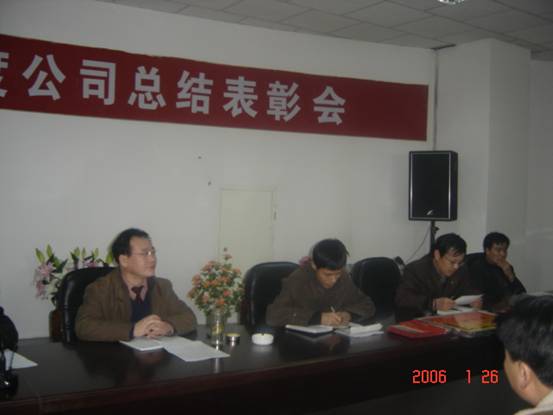 会上首先由总经理做了讲活,回顾了05年的主要工作,展望了06年的工作设想。接着由办公室主任韩文斌宣读了05年先进个人及部门表彰决定,并为先进个人及部门颁发了证书和奖状,然后先进部门和个人代表相继发了言。最后由董事长董清河做了会议总结讲话,他和全体员工共同回顾了市场从无到有的建设历程,让新老职工对市场有了更深刻的认识,在今后的工作中不忘过去,珍惜现在良好的工作环境而奋力拼搏,使市场得到更好、更快的发展。