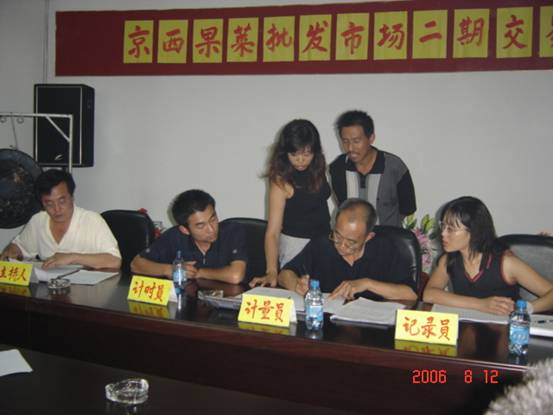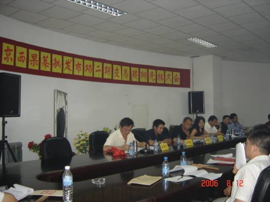 今日上午9时,在京西果菜批发市场五楼会议室召开的新建副食、粮油交易楼棚公开竞标大会顺利结束。
