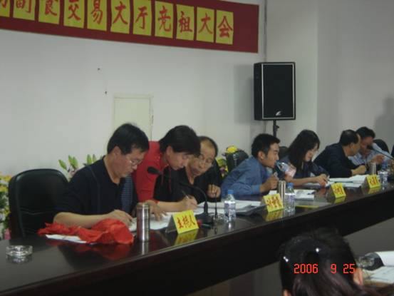 京西果菜批发市场副食品交易大厅柜台竞租大会于今天上午9时在市场五楼会议室顺利召开.参加会议的领导有市场副总经理赵文斌、孙海涛。会议由办公室主任常树旭主持,记录员、计量员、计时员分别是:张海红、赵文德、杨利军,会上共有112家商户顺利竞标成功,他们分别是:熟食类:22户、面食类:30户、生肉类:36户、豆制品:17户、小菜类:6户、其它类:1户。