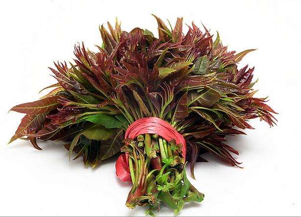 黑山口香椿叶痕较大,长40厘米,宽24厘米,小叶长椭圆形,叶端锐尖,长10—12厘米,宽4厘米,幼叶紫红色,成年叶绿色,叶背红棕色,轻披蜡质,略有涩味,叶柄红色。富含维生素E和挥发性芳香族有机物,具有抗衰老和补阳滋阴作用,也可健脾开胃,增加食欲。