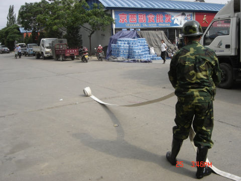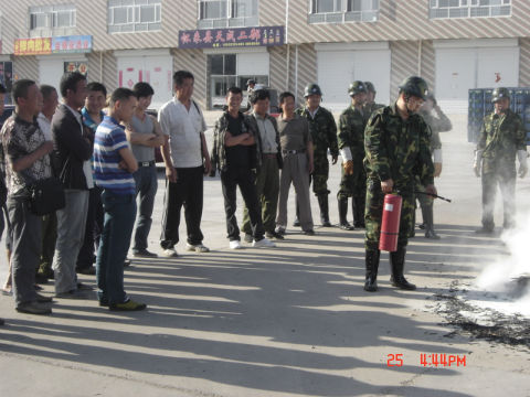 为了进一步提高全市场商户的安全意识,掌握扑救初期火灾的方法,京西果菜批发市场于2012年5月25日下午,在市场副经理孙海涛的带领下,管理部成员倪学伟、杨静、宁巨峰、陈海军、谢军民、牛宝杰、王默的参与下,在市场西门广场处举行了一场消防演习活动。本次演习向广大商户及管理人员充分展示了面临火灾时该如何使用灭火器、高压水枪及快速切断火源等必要消防措施,以达到灭火的目的。